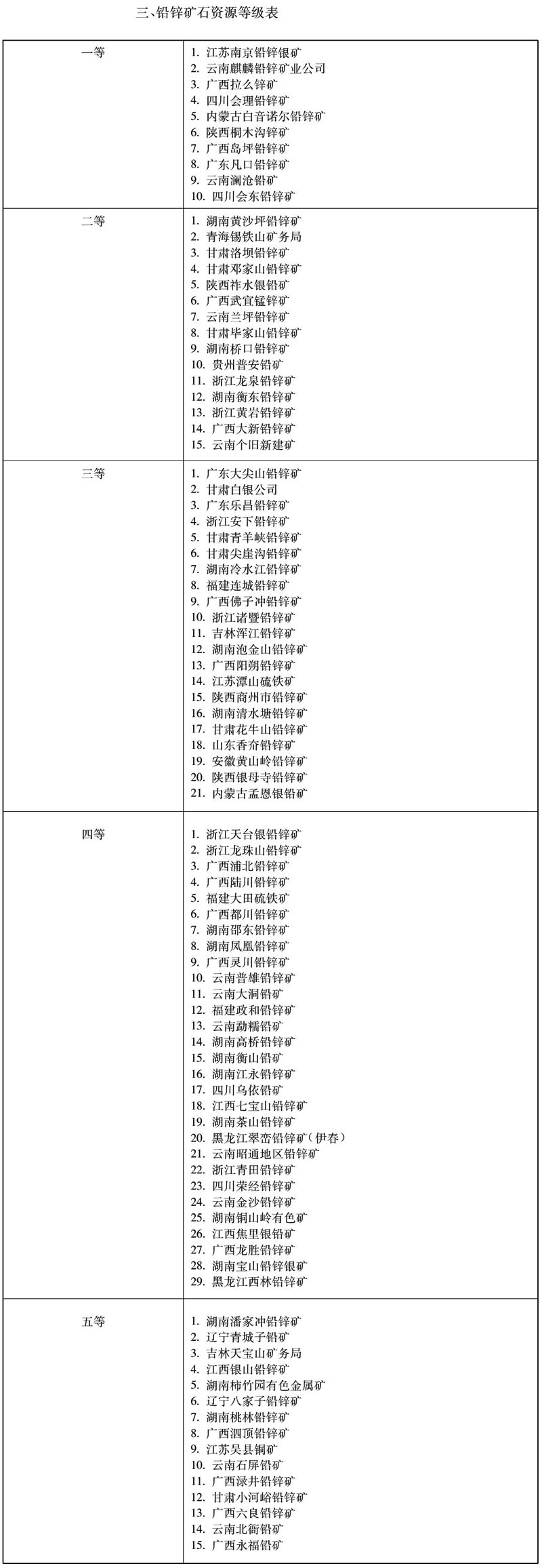 矿产品等级的划分,按照财政部制定的《几个主要品种的矿山资源等级表》(附表二)执行。